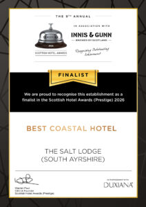 “We spent 3 nights at the Salt Lodge in Troon to enjoy the outdoors and play golf. This small hotel is brand new, so clean, and the staff is so friendly, helpful, and accommodating. A refreshing change from England! Units include a small kitchenette, balcony, living area, bedroom and bath. Housekeeping was suspended in light of Covid. The restaurant on the premises, Scott’s, is good, but you must have a booking (even for breakfast and lunch). The Salt Lodge is conveniently located within walking distance to the village, the beach, and coastal walk to Ayr.”