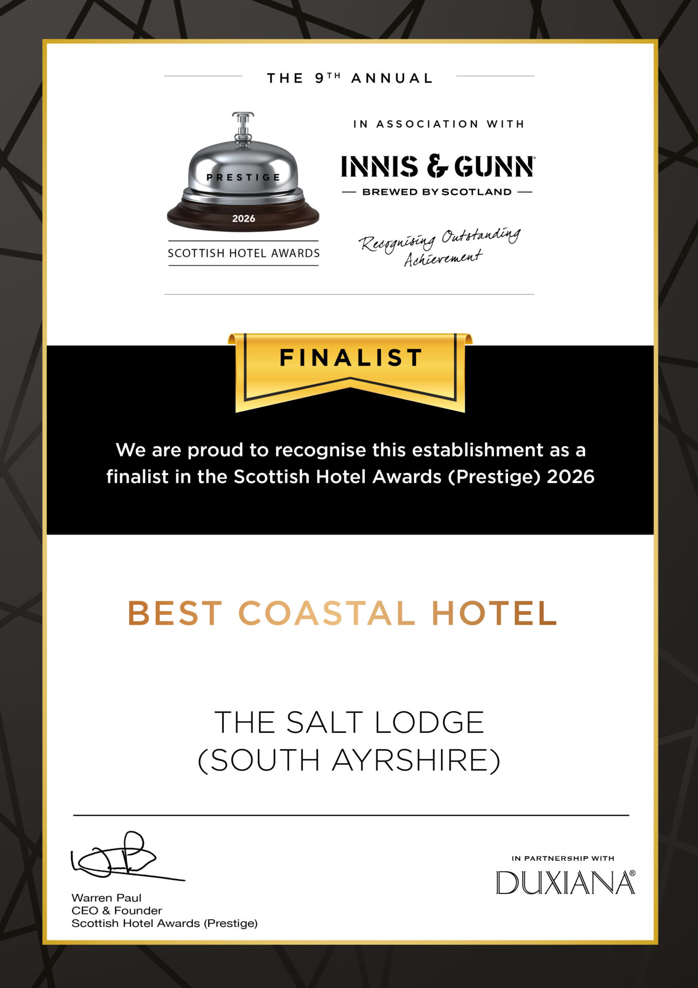 The Salt Lodge at Troon Yacht Haven offers contemporary, comfortable and flexible accommodation in a unique coastal setting overlooking the harbour. Our one and two bedroom suites offer flexible, stylish living spaces, with a kitchen and dining area, and the option of great food and drink at the adjacent restaurant, Scotts. Remember to book direct to get the best rates guaranteed!